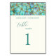 Turquoise Flowers Wedding Table Number