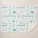 Introducing our cosy and charming sherpa blanket, perfect for cuddling up on chilly evenings or simply adding a touch of comfort and style to your living space. The blanket comes in a beautiful white and light blue design, featuring a white background adorned with light blue and turquoise hearts, as well as the words "love" and "love you" in various fonts and directions. This super cute design is sure to bring warmth and joy to anyone who sees it.