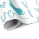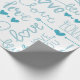 Introducing our beautiful "Love" wrapping paper, perfect for adding a touch of sweetness to your gift-giving occasions. The design features a delightful white background adorned with light blue and turquoise hearts and the words "love" and "love you" in various fonts and directions, making it a charming and eye-catching addition to any present.