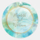 Seal your invitation envelopes or favours with these elegant gemstone wedding stickers showcasing your names encircled by a watercolor turquoise marbled pattern and rustic gold rings. Designed to coordinate with my Turquoise Gemstone Watercolor wedding collection.