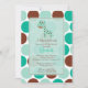 Adorable Baby Shower invitation featuring a turquoise blue giraffe set on a brown & blue polka dot background. Matching items available in our shop. Perfect for a baby girl or baby boy baby shower. ©Stockberry Studio