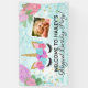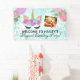 Add your daughter's custom photo to this pretty unicorn birthday party banner..."Welcome to (your girls' name) Magical Birthday party" banner sign decoration. Pretty pink, purple and turquoise blue flowers and pretty printed gold glitter unicorn horn and ears. Celebrate a unicorn themed birthday party for mystical magical fun and imagination with this whimsical unicorn themed decor.