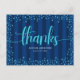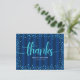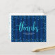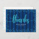 Make sure your favourite grad shows her appreciation to all who supported her milestone event! Send out this stunning, modern, sparkly turquoise blue typography script and glitter confetti dots against a navy blue striped background, custom thank you postcard. On the front, personalise with your grad’s name and class year. Type a custom note and return address on the back. Guaranteed to add a stylish touch to her correspondence! Matching invites, return address labels, paper plates, napkins and other graduation goodies are also available in this trendy and special collection.