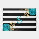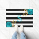Turquoise Gold Floral Monogram Black White Stripes Doormat
