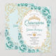 Turquoise gold Quinceanera celebration invitation. Features, script font, gold butterflies, watercolor roses and tiara. Perfect for an elegant princess style glam celebration. Personalise with your own details. Printed Zazzle invitations or instant download digital printable template.