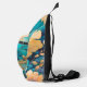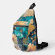 Turquoise Gold Purple Navy Watercolor Flowers Sling Bag