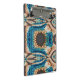 Decorative Southwestern Native tribal ethnic asymmetrical pattern in shades of turquoise, green and earthy gold and brown..
