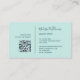 Present your beauty expertise in style with this elegant business card designed for makeup artists. Featuring a stunning teal abstract design, it comes with a convenient QR code on the back for clients to quickly access your website or portfolio. The front showcases your name and profession, ensuring you make a memorable impression. Perfect for makeup artists, beauty professionals, and stylists, this business card exudes professionalism and creativity. Customise it with your contact information and social media handles, and showcase your work in a stylish, modern way.