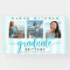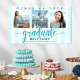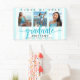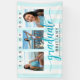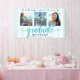 Announce to the world that your favourite grad has reached their milestone with this stunning, simple, modern, girly personalised 3 photo banner. Sparkly turquoise glitter script typography overlays a light turquoise blue and white striped background. Add 3 photos of your choice and personalise the custom text with your graduate’s name, school name and class year. Choose from indoor or outdoor options. Matching invites, thank you cards, cap toppers, fans, napkins, plates and other graduation goodies are also available in this trendy and stylish collection. Guaranteed to preserve cherished memories of their special occasion!