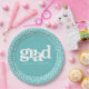 Be proud, rejoice and showcase this milestone of your favourite grad! Celebrate with this bold, stunning, simple, modern, custom paper plate. Bold, graphic, white typography and dots overlay a turquoise aqua blue background. Personalise with your grad’s name and class year Your choice of 2 sizes: 7” or 9”. Matching announcements, address labels, cap toppers, fans, napkins and other graduation goodies are also available in this trendy and modern collection. Guaranteed to add stylish fun to their special party!