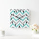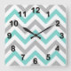 Turquoise, Gray, Wht Large Chevron ZigZag Pattern Square Wall Clock