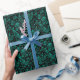 Turquoise green polka dot pattern on black wrapping paper