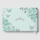 Cherish your special day for the years to come with a customized photo guest book. Featuring pastel turquoise green-blue roses and turquoise and silver butterflies. Personalize it with your details easily and quickly, simply press the Edit Using Design Tools button to further re-arrange and format the style and placement of the text. Perfect for Sweet Sixteen Birthday, Quinceanera, Debutante Ball, 18th Birthday and more occasions! (c) The Happy Cat Studio