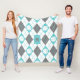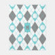 turquoise grey white basketball themed argyle fleece blanket