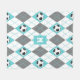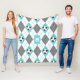 turquoise grey white soccer themed argyle pattern fleece blanket