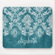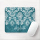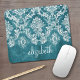 Turquoise Grungy Damask Pattern Custom Text Mouse Mat