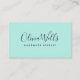 Turquoise Handwritten Script Social Media Icons Business Card