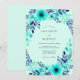 This design features a cool-toned botanical arrangement of watercolor anemones and lush foliage. Sprigs of navy and teal leaves create a serene aesthetic against a soft mint background. The collection of winter blooms and greenery offers an elegant and refreshing atmosphere for a sophisticated event.