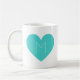 Modern customisable mug featuring turquoise heart illustration with simple typography monogram. Personalise this mug by adding your own letters. This will be perfect as a gift.