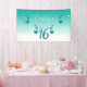 Cute turquoise glitter numbers and hearts over ombre turquoise and white background. Sweet 16. Custom Monogram