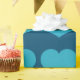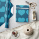 This wrapping paper features a repeating pattern of shapely turquoise hearts on a blue background. Great for a baby boy shower, baptism, or 1st birthday.