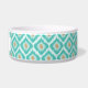 Stylish diamond ikat pattern in teal turquoise and beige color scheme together with a personalizable text area for a pet's name or other custom text such as "dinner" or "water", for example.
