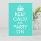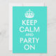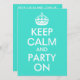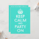 Customisable text areas on a turquoise and white "Keep Calm and Party On" parody for a birthday party.