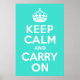 Turquoise and white "Keep Calm and Carry On" modern version of classic poster.