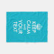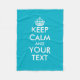 Custom keep calm and your text fleece blanket. Create your own funny keep calm and carry on parody. Vintage keepcalm typography template with crown. Custom background colour ie aqua / turquoise blue. Cute keepcalmandcarryon spoof examples: Keep calm and dance on. Keep calm and sail on. Keep calm and drink coffee. Available in small medium and large.