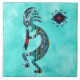Brighten Your Home with this Unique "One of a Kind" Southwest Kokopelli Tile! It Features a Southwest Turquoise, White, Gold and Rust Kokopelli Playing the Flute and Dancing Under the Sun on a Turquoise and White Background!