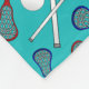 Modern and trendy sports lax turquoise lacrosse pattern with lacrosse black sticks and a white rubber ball background. Sports gift ideas for men, women, boys and girls. Ideal for birthdays.