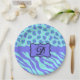 Turquoise Lavender Zebra Leopard Skin Monogram Paper Plate