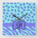 Turquoise Lavender Zebra Leopard Skin Monogram Square Wall Clock