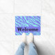 Welcome visitors to your home with this stylish and colourful turquoise and lavender purple zebra skin pattern door mat. This door mat is customised with the word Welcome that you can change to another word or name. A Periwinkle lavender purple strip gives an area for personalisation to customise Enjoy this popular and contemporary design that will add a trendy home decorative accent. This design is available in several colour combinations in this store.