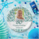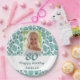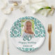 Turquoise Leaf Pattern 80th Birthday Party Photo Paper Plate