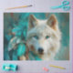 A striking arctic wolf with ice-blue eyes framed by turquoise feathers and southwest patterns—made for statement furniture flips. The cool teal ground and warm ivory fur create a bold lodge vibe that works with rustic farmhouse, cabin, and boho interiors. Use on drawer fronts, cabinet panels, hutches, and armoires to add a handcrafted focal point. The large portrait scale and painterly texture lay smoothly, delivering a refined finish that turns dressers and sideboards into showcase pieces. turquoise arctic wolf art, lodge wolf portrait tissue, teal cabin wolf decor, rustic lodge decoupage paper, winter wolf tissue for furniture, dresser drawer liner tissue, luxury decoupage tissue