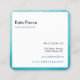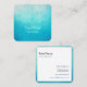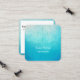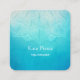 Turquoise mandala background with decorative font script on the front of rounded square business card. White back with custom border and personal information in a modern layout