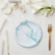 This is a trendy modern paper plate accented with a classic marble design that has blue, green undertones and veining, making it easy to coordinate with any turquoise party or shower theme!