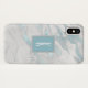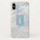 Elegant iPhone X case done in a white, grey and turquoise foil looking marbled pattern. A grey and turquoise square text area, in the middle of the case, has a single white letter monogram. Personalise the one letter monogram, for yourself or as a great gift idea.