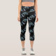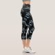 Turquoise Marbled Om Scattered Black Background Capri Leggings