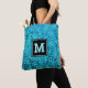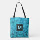 Turquoise monogram leaf pattern bold modern custom tote bag
