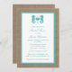 The design features a lovely rustic burlap effect background with two cute turquoise monogram seahorses.