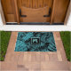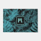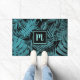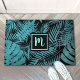 Bring a bit of elegant tropical hospitality into your home with this chic, modern doormat with a handwritten monogram initial over a graphic palm leaf pattern of dusty teal gradations overlaying a black background. Makes a great gift for a special friend, or even yourself!
