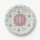 Turquoise Native Tipi Monogram Pattern Paper Plate