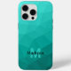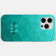 Turquoise teal geometric mesh pattern Monogram iPhone 15 Case. Personalise with your custom initial and name. Triangle geometric mesh with light to dark turquoise ombre gradient.