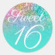 Turquoise Ombre Mermaid Glitter Sweet Sixteen Classic Round Sticker