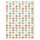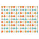 This colourful mid century modern tablecloth features turquoise blue, two shades of orange, cream, and tan circles on a black lined grid. Add that bit of fun to your dining room decor!