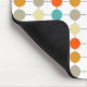 This colourful mid century modern mouse pad features turquoise blue, two shades of orange, cream, and tan circles on a black lined grid. Add that bit of fun to your desk!