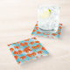 TURQUOISE & ORANGE FALL LEAVES BOWS PUMPKINS GLASS COASTER