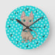Turquoise Paw Print Sphynx Cat Wall Clock